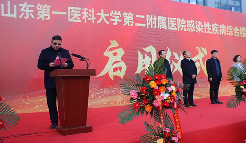 附屬醫(yī)院?jiǎn)⒂脙x式領(lǐng)導(dǎo)講話照片:山東第 一醫(yī)科大學(xué)第 二附屬醫(yī)院感染性疾病綜合樓占地面積約2100平方米,設(shè)計(jì)建筑面積7980平方米,地下一層,地上五層。項(xiàng)目大樓建設(shè)遵循“平戰(zhàn)結(jié)合、科學(xué)、功能完善”的原則,嚴(yán)格按照感染性疾病要求設(shè)計(jì)流程,集門診、檢查、住院于一體,日常服務(wù)于常見(jiàn)傳染病的診療和救治,遇到重大傳染病疫情時(shí),可以迅速轉(zhuǎn)變成集中收治患者的高標(biāo)準(zhǔn)戰(zhàn)時(shí)救治基地。該項(xiàng)目為山東省醫(yī)療衛(wèi)生系統(tǒng)17個(gè)主要項(xiàng)目之一,項(xiàng)目的啟動(dòng)對(duì)提高醫(yī)院乃至泰安市和山東省的公共衛(wèi)生服務(wù)與感染性疾病防控能力、保障人民群眾生命安全和身體健康具有重要意義。